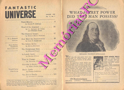 Fantstic Universe é mais uma da revistas emblemáticas da Golden Age e esta do ano em que nasci. Curioso é que já se vendia em Portugal, pelo menos na Livraria Bertrand.