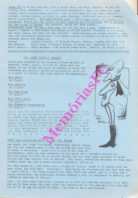 A ideia é ir aqui publicando todo o tipo de material (revistas, correspondência, livros, ilustrações, etc.) que ao longo dos anos fui guardando e que constituem as minhas memórias desde os 12 anos com a ficção científica, fantasia e horror. Foi nesse longínquo ano de 1972 que tive o primeiro contacto com o género através do livro do Poul Anderson, O Planeta dos Homens Alados, publicado na extinta Argonauta. Pretendo assim que não caia no esquecimento muito do que por cá e lá fora se passou.