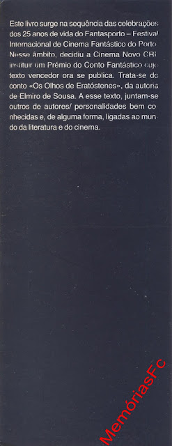 Antologia do Grande Prémio do Conto Fantástico que surge na sequência das celebrações dos 25 anos de existência do Fantasporto-Festival Internacional de Cinema Fantástico do Porto. Este prémio teve como vencedor Elmiro de Sousa, com o conto Os Olhos de Eratóstenes.