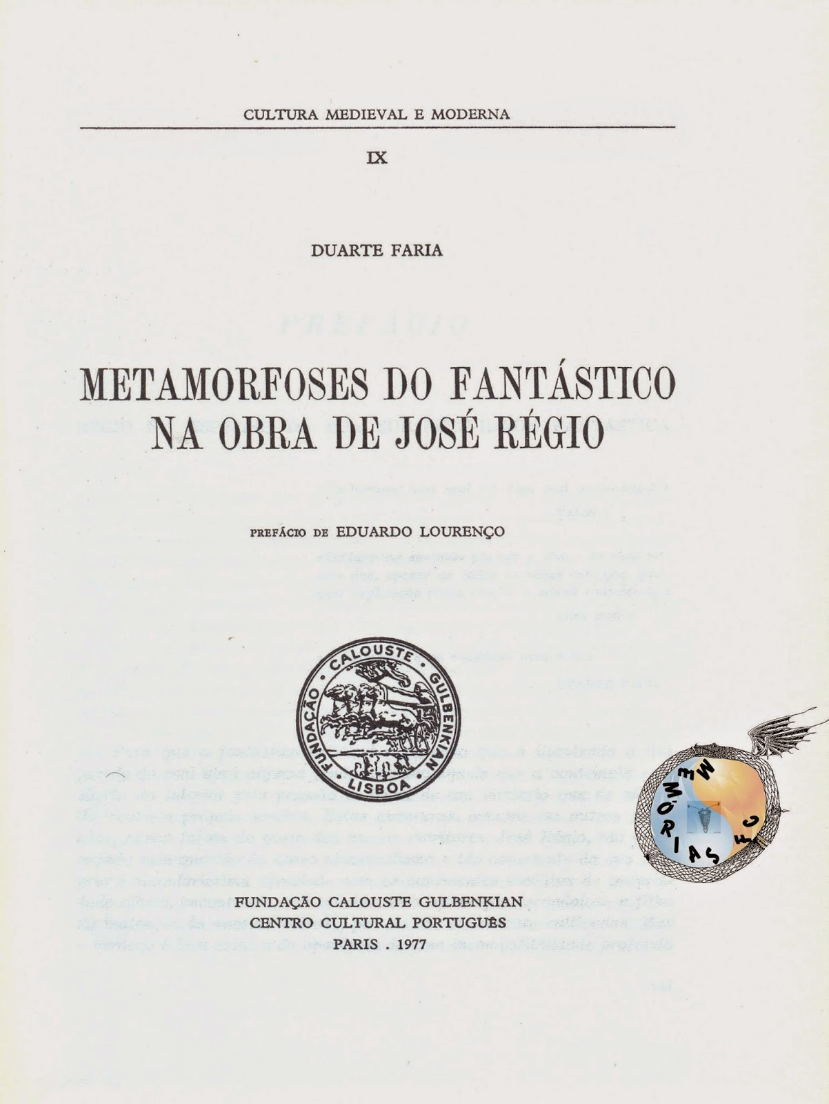 Metamorfoses do Fantástico na obra de José Régio - Duarte Faria (Fundação Calouste Gulbenkian-Centro Cultural Português, Paris, 1977)