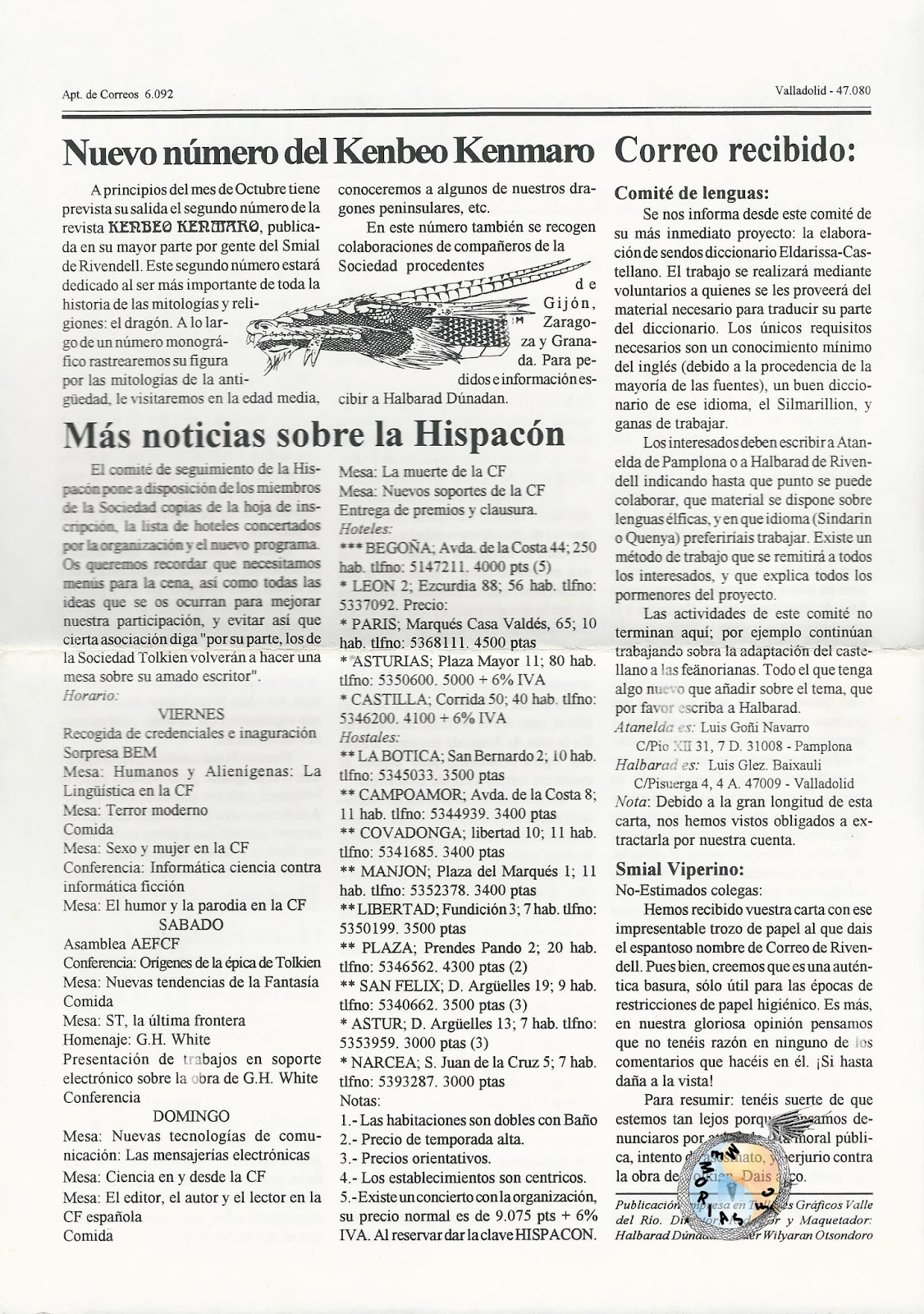 Sociedade Tolkien Española - Boletín extraordinario para Hispacon 93