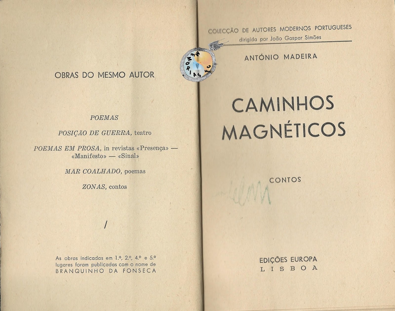 Caminhos Magnéticos - António Madeira (pseudónimo de Branquinho da Fonseca), Edições Europa, Lisboa, s.d. (1938?)