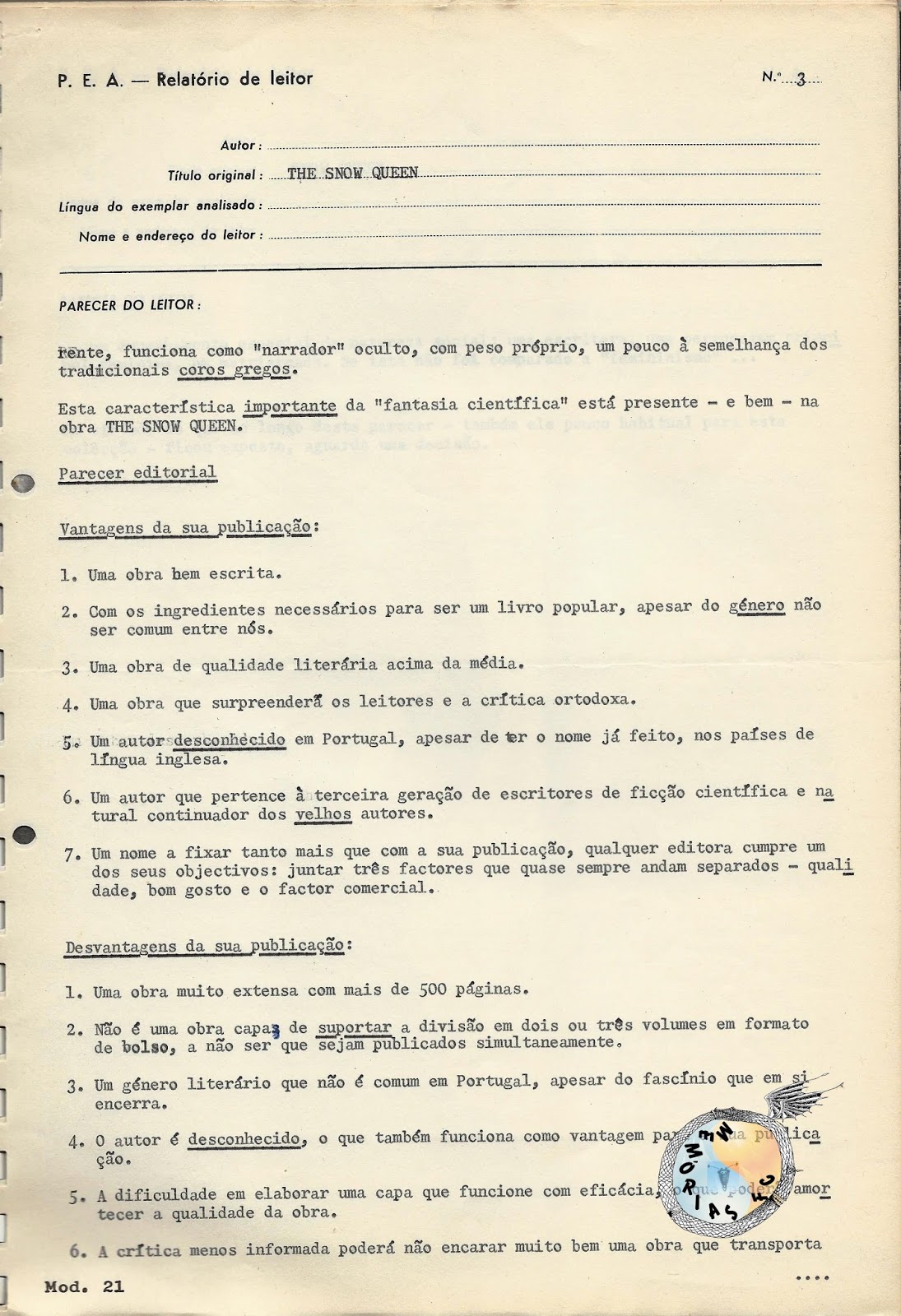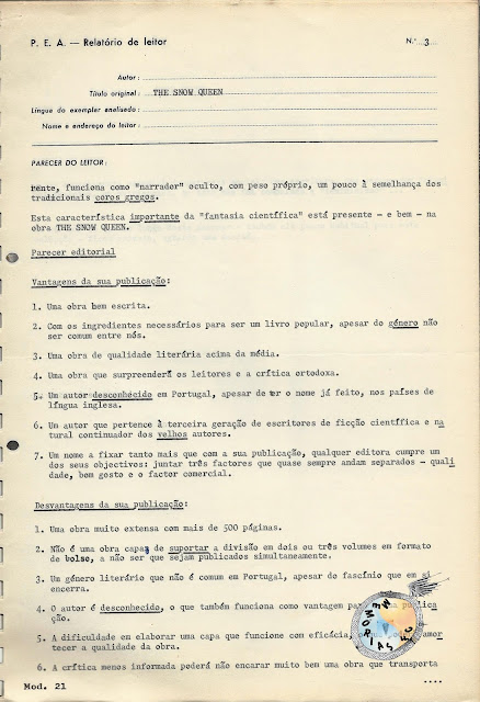 A ideia é ir aqui publicando todo o tipo de material (revistas, correspondência, livros, ilustrações, etc.) que ao longo dos anos fui guardando e que constituem as minhas memórias desde os 12 anos com a ficção científica, fantasia e horror. Foi nesse longínquo ano de 1972 que tive o primeiro contacto com o género através do livro do Poul Anderson, O Planeta dos Homens Alados, publicado na extinta Argonauta. Pretendo assim que não caia no esquecimento muito do que por cá e lá fora se passou.